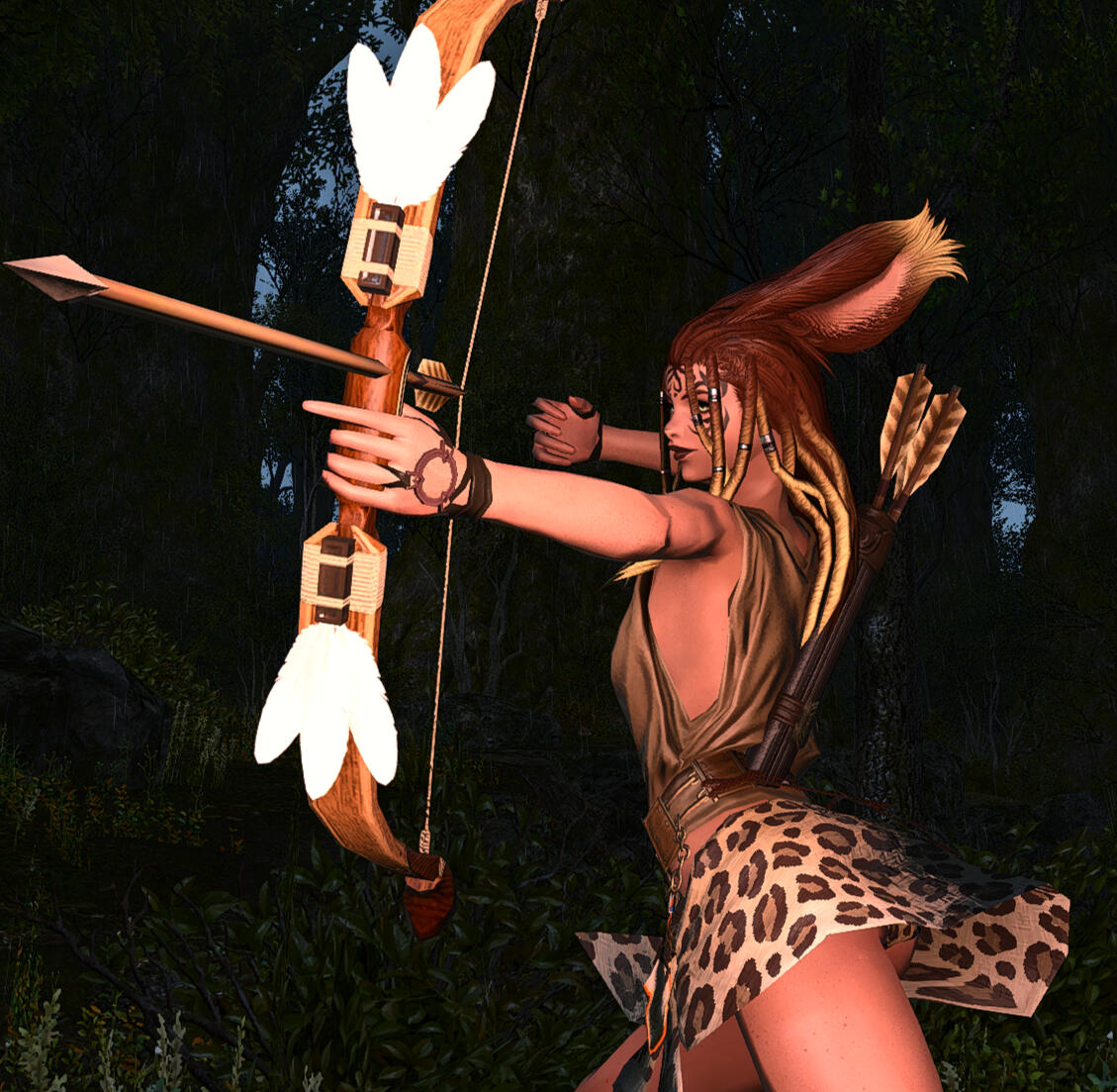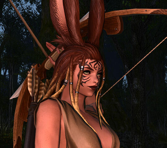 Sylvas was born into a small, traditional Viera tribe in a remote village in the dense Golmore Jungle. She was one of near-countless siblings born to their mother, the tribes chieftain. Unsure of her place in the tribe and weary of their traditions, Sylvas fled home at the age of 20 to pursue a life of freedom or die trying.After nearly being taken by the jungle on her journey outward toward what she would soon learn to be the kingdom of Doma, she was rescued from almost certain death by an elderly Hyur man named Harald. The man kindly took her in for months and slowly nursed her back to health. When she was eventually back on her feet, he provided her a ferry ticket to the city of Kugane along with a small sum of gil to get her started. She was happy to accept the help, and promised she'd visit him every weekend to update him on her new life in the big city.
